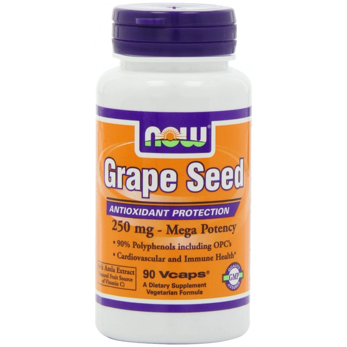 NOW® Grape Seed Extract is a highly concentrated natural extract containing a minimum of 90% Polyphenols, including OPC’s (Oligomeric Proanthocyanidins), the beneficial antioxidant compounds found in Grape Seeds. Grape Seed Extract and OPC’s have been the subject of numerous scientific studies demonstrating their efficacy in the support of cardiovascular health and immune system balance. In addition, non-clinical studies have shown that Grape Seed Extract may protect healthy brain and nerve tissues.*