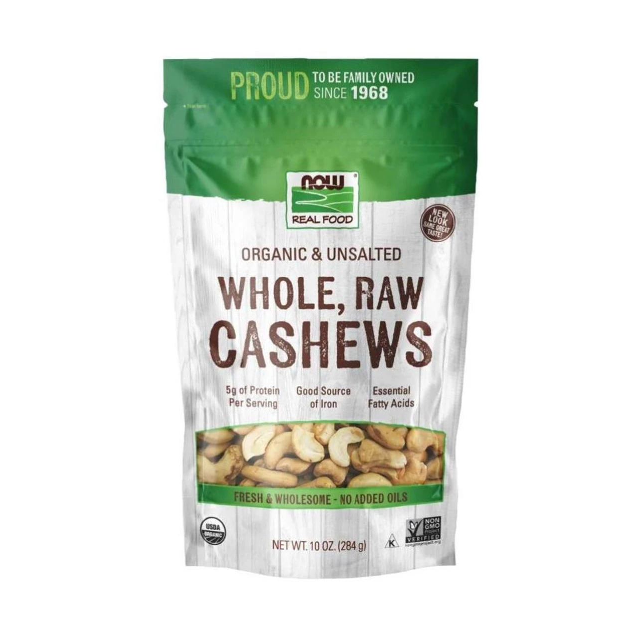 Now foods Raw Cashews provide five grams of protein per serving and have a rich, buttery, nutty flavor.